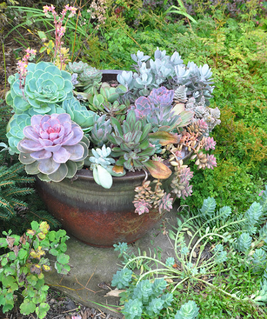 ReplyDeleteThe pot of succulents is very pretty, isn't it? I believe that these would be indoor succulents that are spending the summer outside.