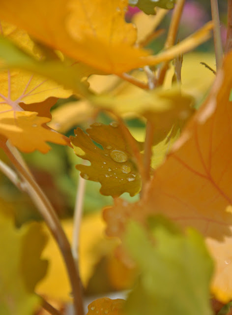 Red is also repeated in the Barberry shrub in the middle foreground on the right and also in the distance. The shrub is the same, but the cultivars are different.