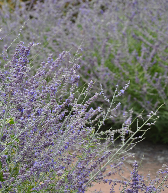 In the Courante and the Menuette sections of the garden the Buddleia were in full flower. They have the common name "Butterfly Bush" for a good reason. There were clouds of Monarch butterflies in the creamy-white colored bushes. Perhaps it was the honey and vanilla fragrance of these white flowers that was drawing them in.