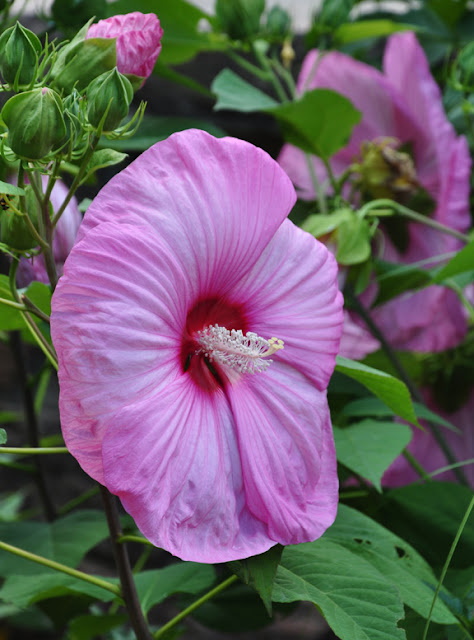 These large dinner plate Hibiscus flowers always amaze me. Who would ever think something so exotic and tropical looking could be found in a Canadian garden!