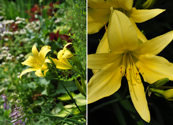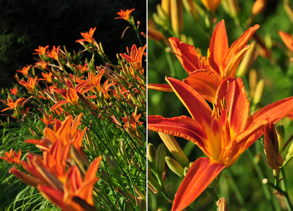 The garden hose doesn't reach these ditch daylilies that grow along the property line,