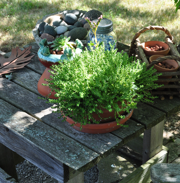 8. Play up texture with contrast. Here the chartreuse flowers of Lady's Mantle, Alchemilla seems all the more delicate with a backdrop of small grey rocks and pebbles.