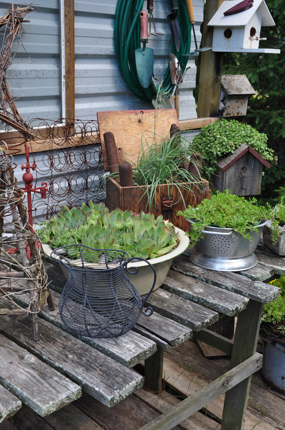 Succulents and Cactus mingle together here.