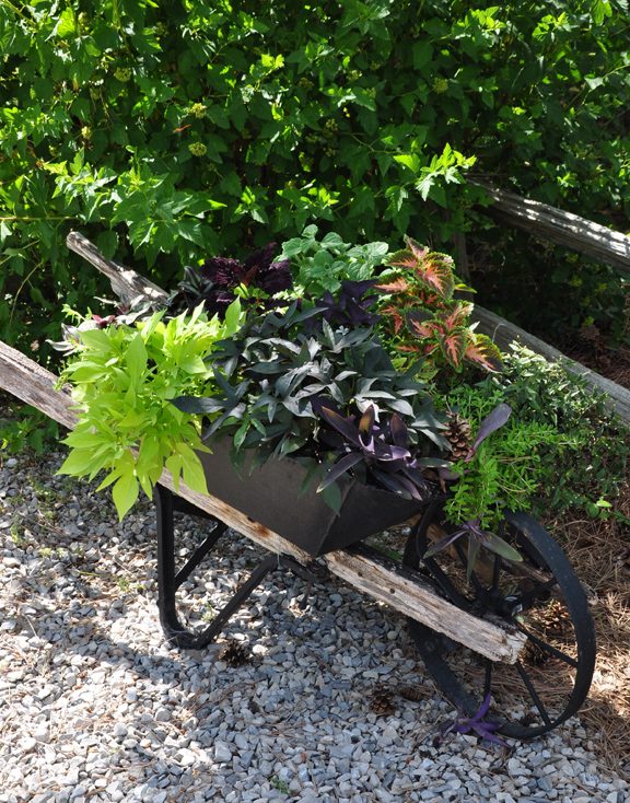 7. When it comes to adding color in shade or part-shade, think beyond flowers. If you have full shade, look for hostas that have interesting variegation or leaf color. In the partly shaded flowerbed along the driveway, Mary-Anne has incorporated a mix of Heuchera and Tiarella to make the garden colorful.