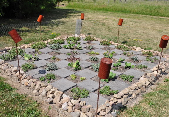 2. Create an interesting border to accentuate the pleasing curves of your flowerbeds. To edge her garden, Mary-Anne laid down a ribbon of landscape cloth and covered it with beach pebbles and a line of grey boulders.