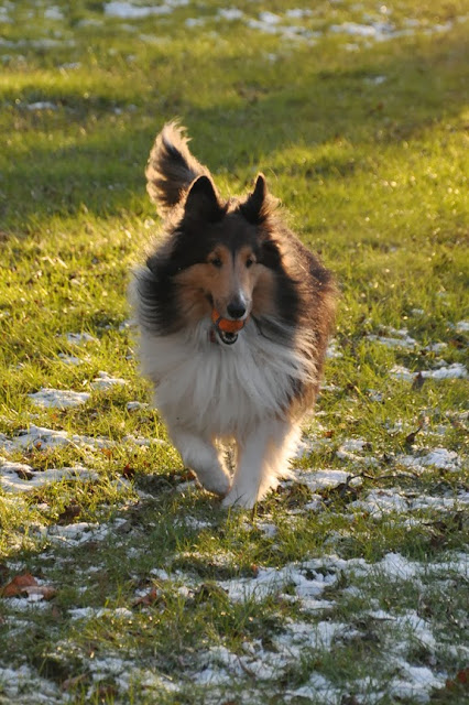 Scrap is a Sheltie in the truest sense- he lives to run and be outdoors. His favourite toy by far is a beat-up soccer ball.