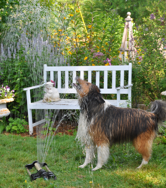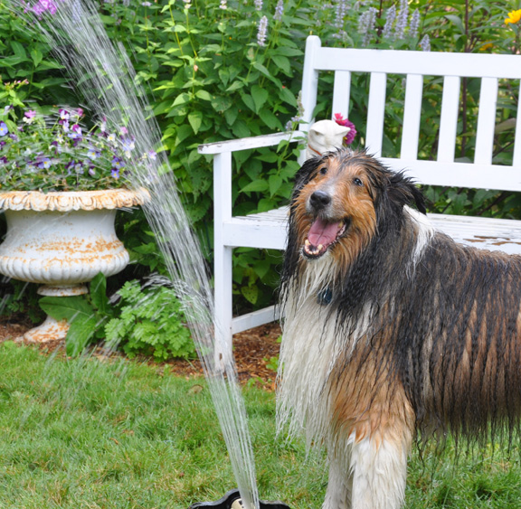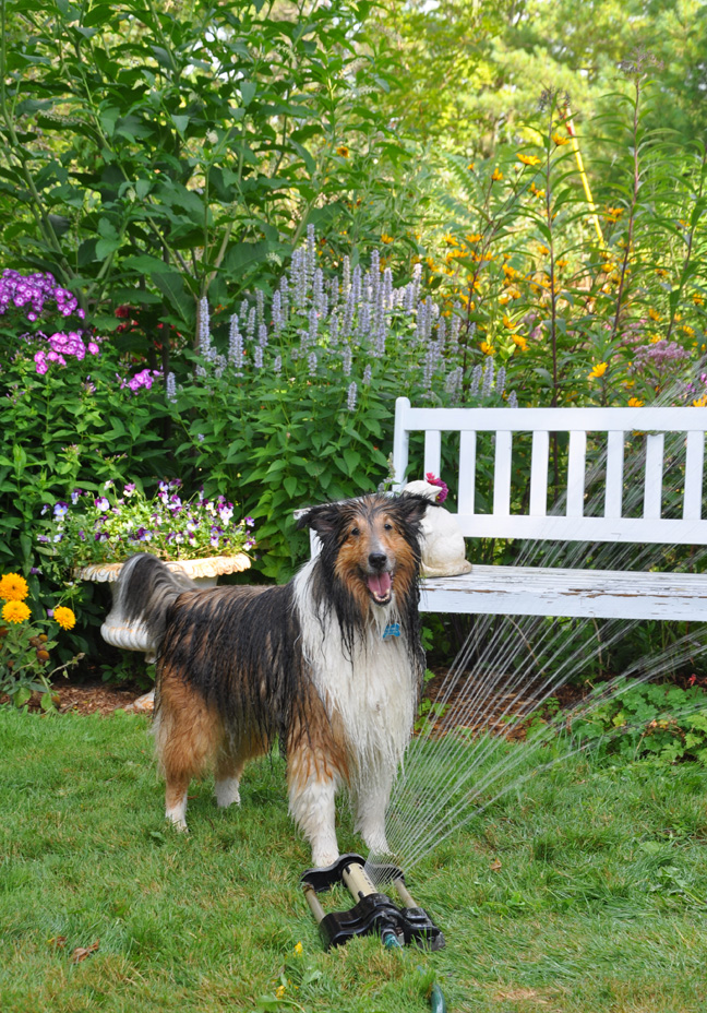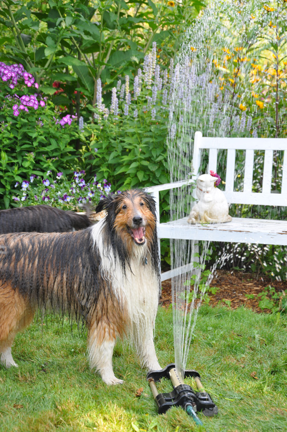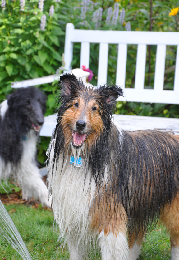 Shelties are furry beasts who hate the heat of summer. Brushing the three of them easily produces a fourth dog (no joking)!