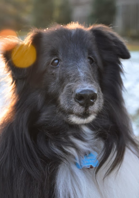 At fourteen Buddy is beginning to show his age in the downy grey fur slowly spreading across his black muzzle.