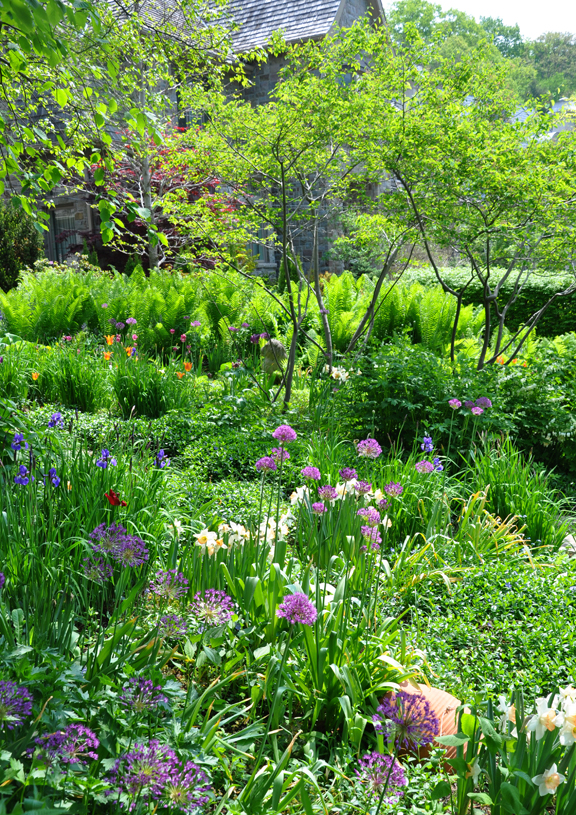 Of course, you don't need a large garden to group your allium bulbs. I thought they looked wonderful in this much smaller garden that I visited last May (visit this garden here).