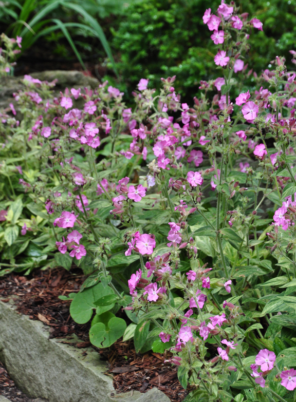 Silene 'Clifford Moor' is a nice variegated cultivar with green leaves flecked in cream. Small magenta-pink flowers appear in spring. Silene 'Clifford Moor' prefers sun to light shade. Normal, sandy and clay soil all work well for Silene. Height: 30-45 cm (12-18 inches), Spread: 38-45 cm (15-18 inches) USDA Zones: 5-11