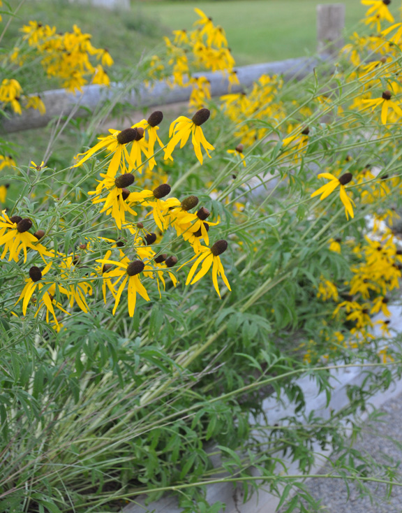 What I think is charming about this Brown-eyed Susan are the flowers. The yellow petals are shorter and less pointy than those of Rudbeckia 'Goldstrum'. This makes for a smaller, rounder flower and more dainty bloom.