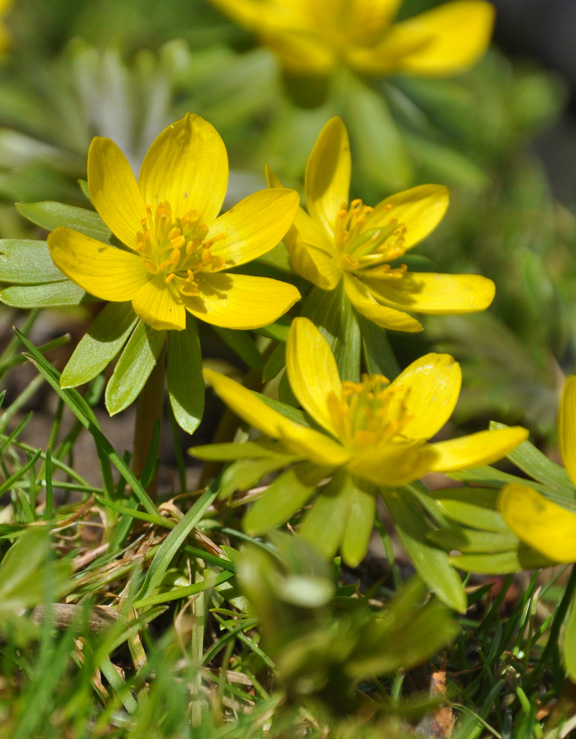 Sunny yellow Winter Aconite or Eranthis hyemalis dot the lawn of what was his front garden.
