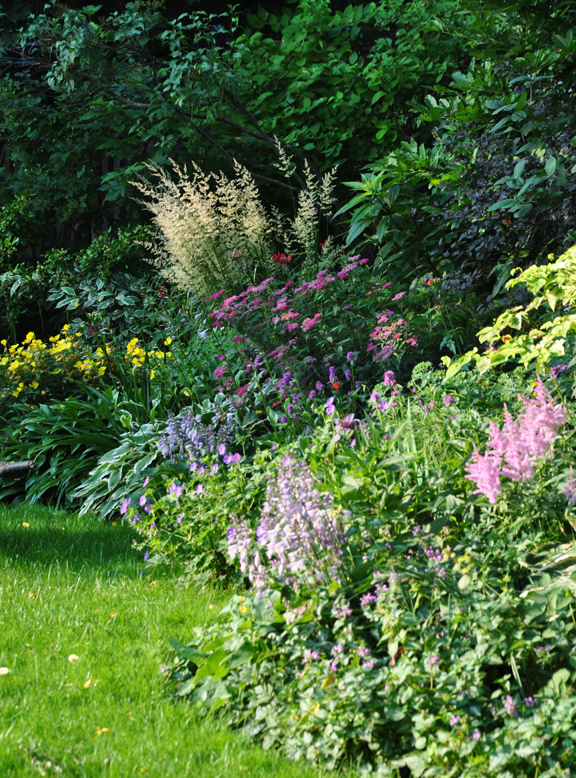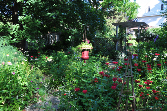 This color scheme in the front garden might be aptly described as everything and the kitchen sink.