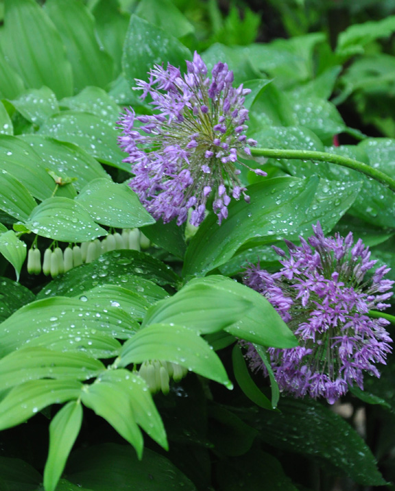 1. Large Hosta 2. Mayapple, Podophyllum 3. Japanese Painted Fern, Athyrium 4. Japanese Ghost Painted Fern, Athyrium X 'Ghost' 5. Epimedium 6. Bugleweed, Ajuga 7. Coral Bells, Heuchera